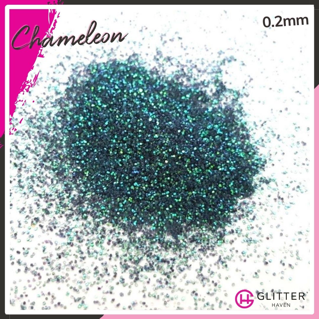 This gorgeous black-green glitter is, as its name suggests, quite the Chameleon. It first presents as a moody colour, dark and grungy. But when the light hits it this glitter explodes with a shock of green sparkle. Let Glitter Haven's Chameleon scramble its way into your glitter stash.