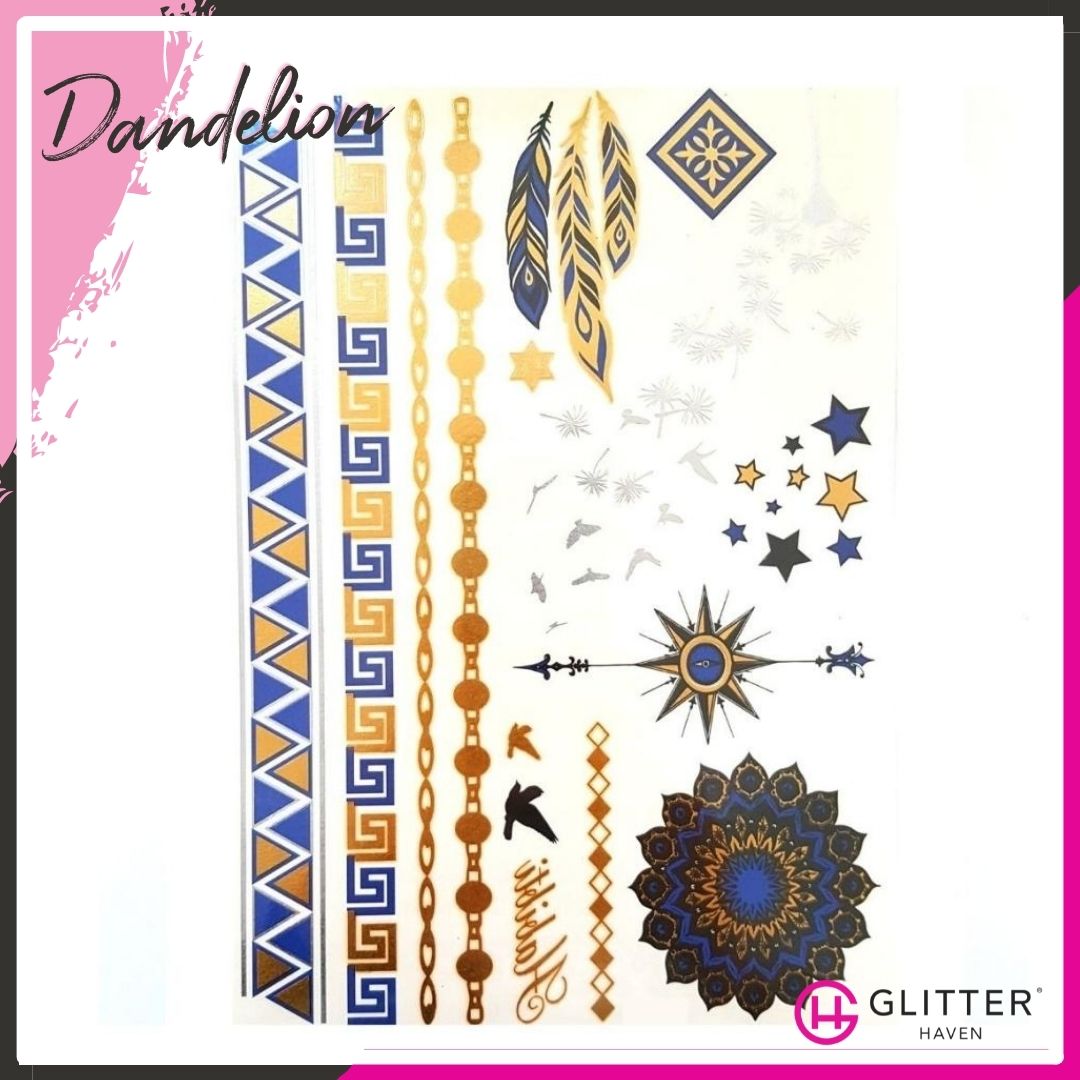 Deep, dark and mystical. Our Dandelion Temporary Tattoo contains lots of individual tattoos that you can mix and match to create a unique look including arm bands, birds, flowers, stars, feathers, and a compass. Perfect for festivals, clubbing, or just a day out with friends, our tattoos are a modern interpretation of jewelry, giving you the freedom to explore different looks without the hefty price tag. If treated carefully, the tattoo will last several days.