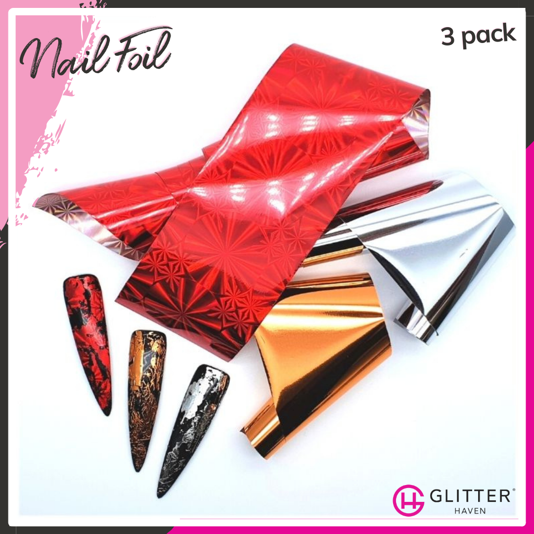 This pack includes 1m of each of our 3 most popular foils in colours that never go out of fashion.