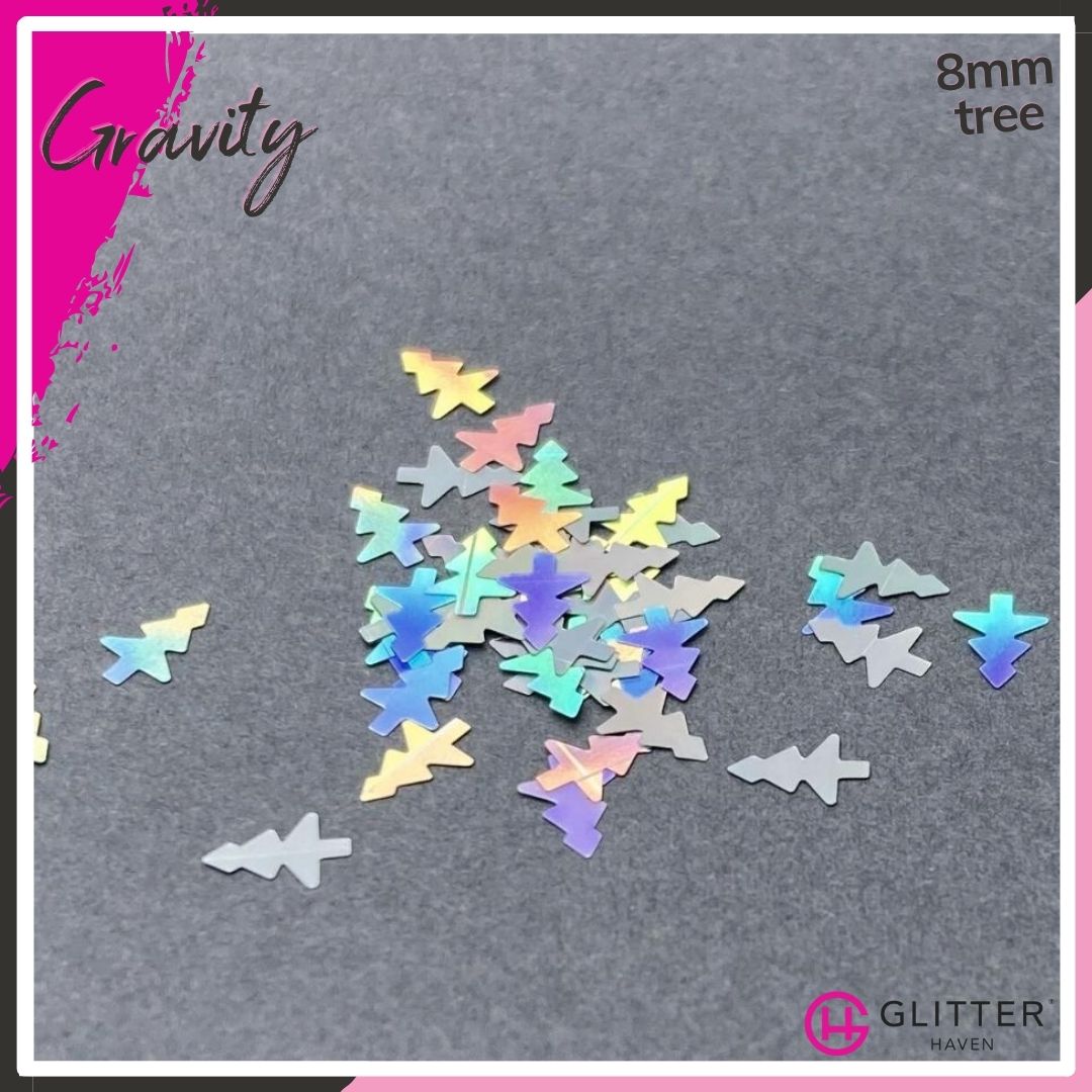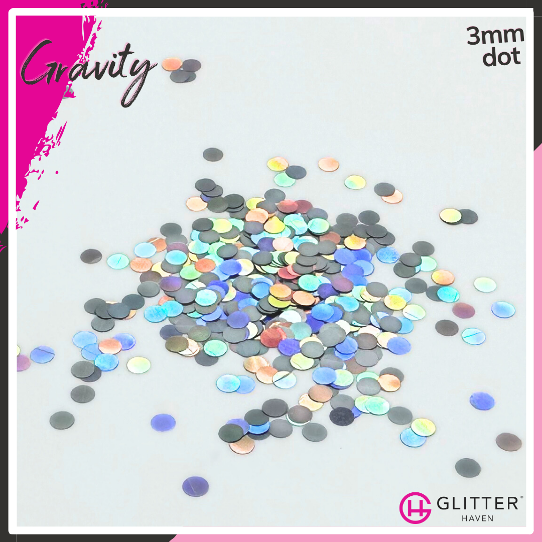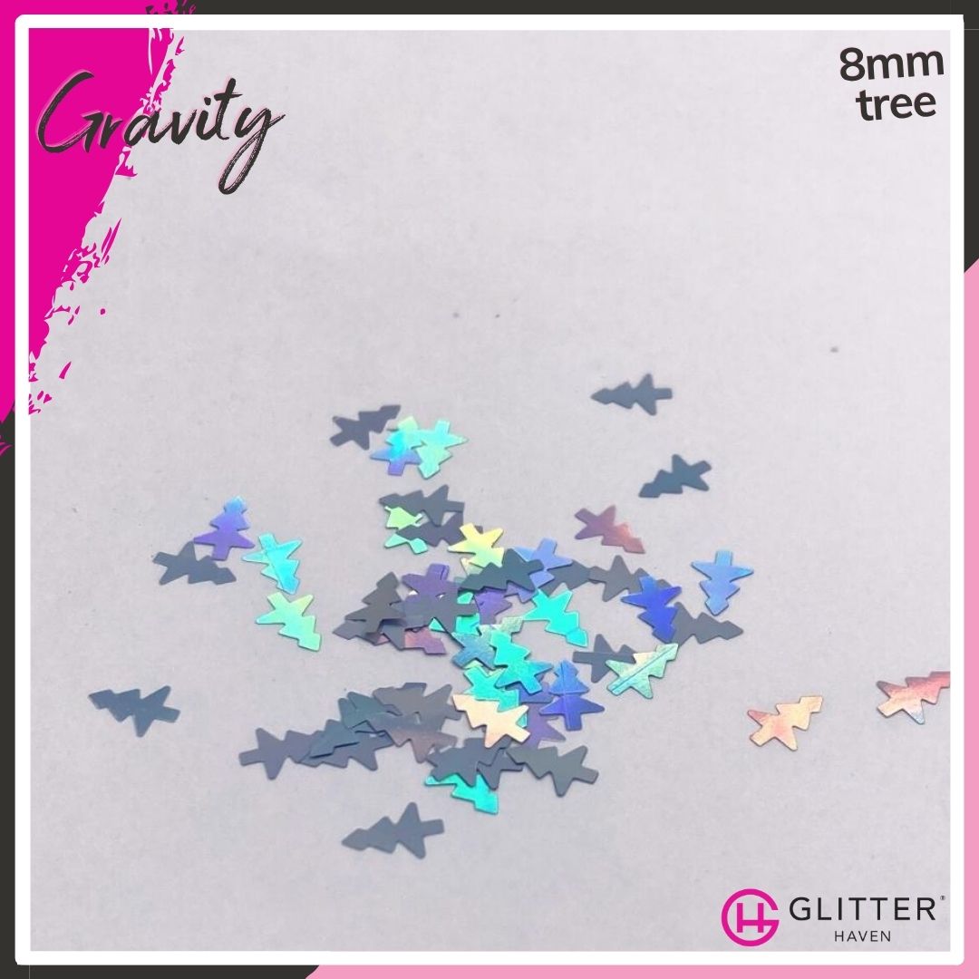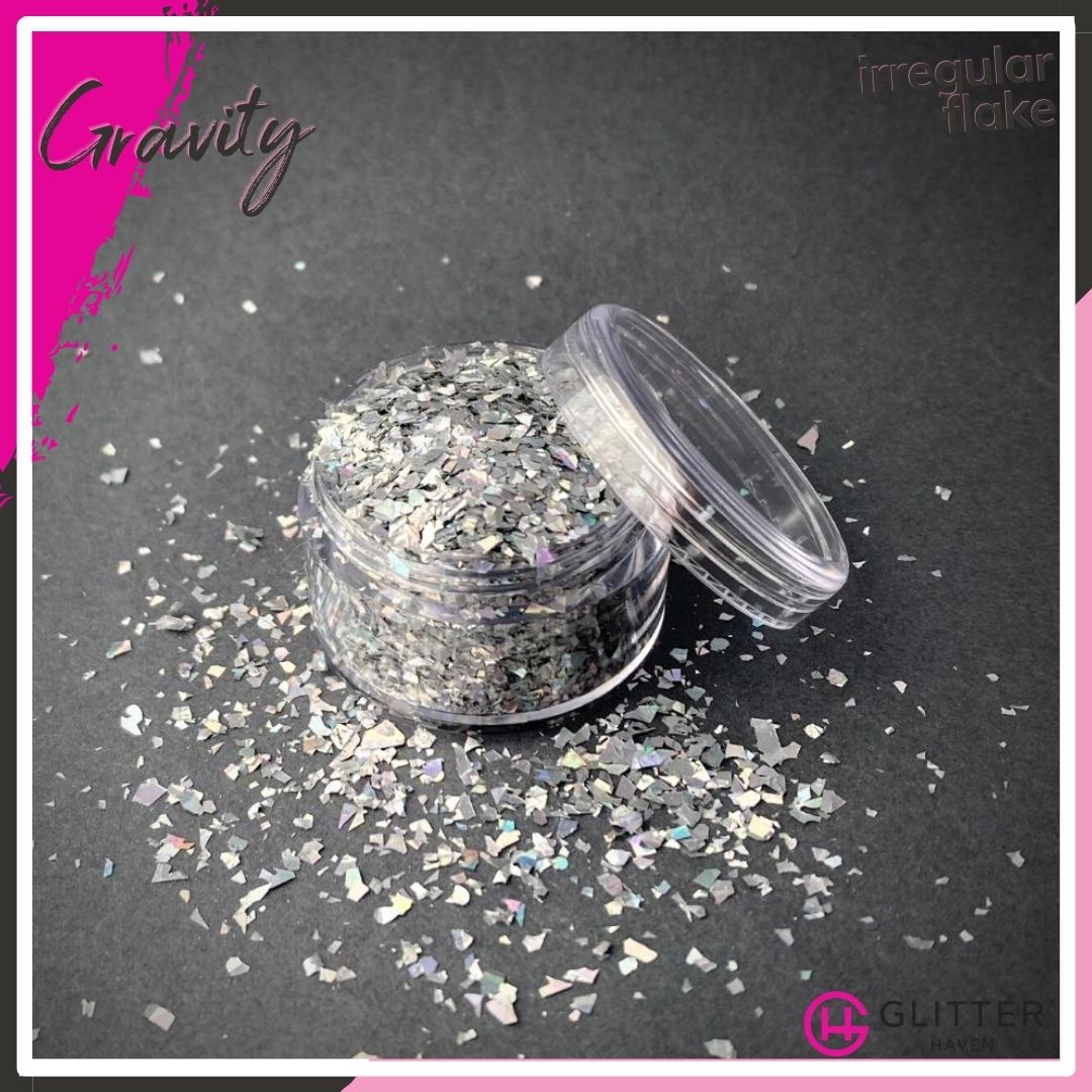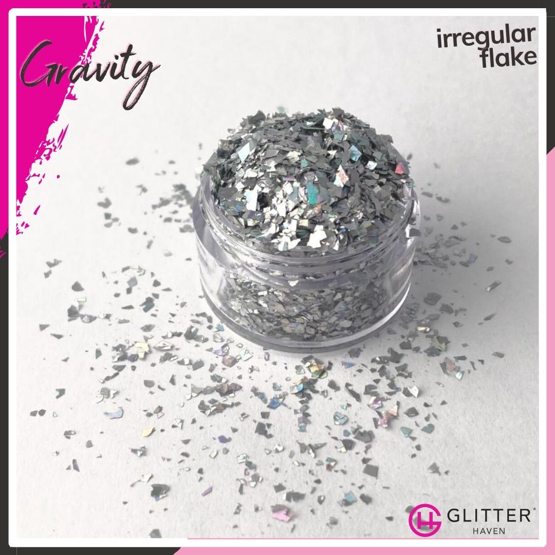 Gravity - the force that keeps you attached to the ground, it's also the name of this laser cut glitter. A slightly darker silver than often associated with glitter, Gravity still sparkles and shines, but the rainbow thrown is slightly more muted.
