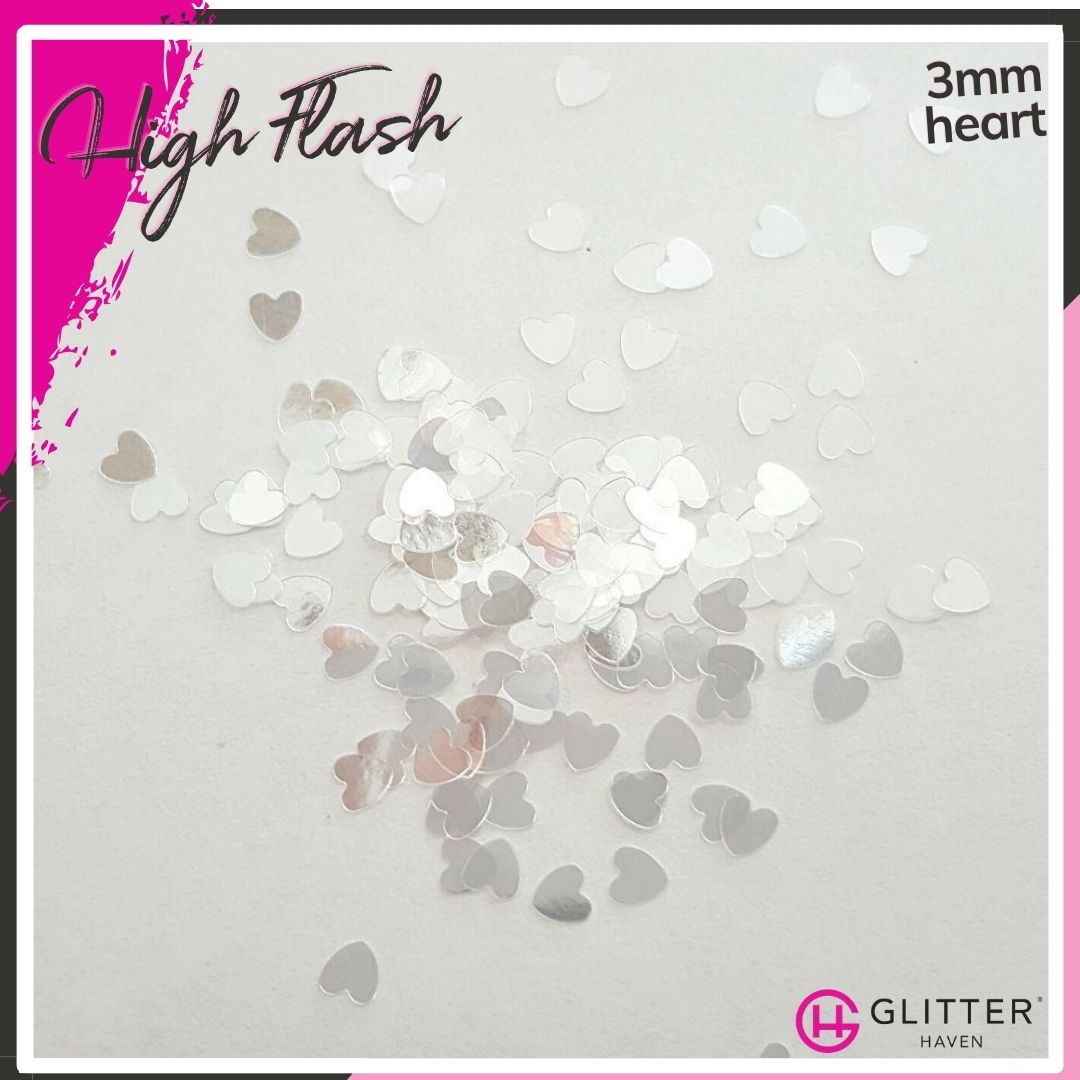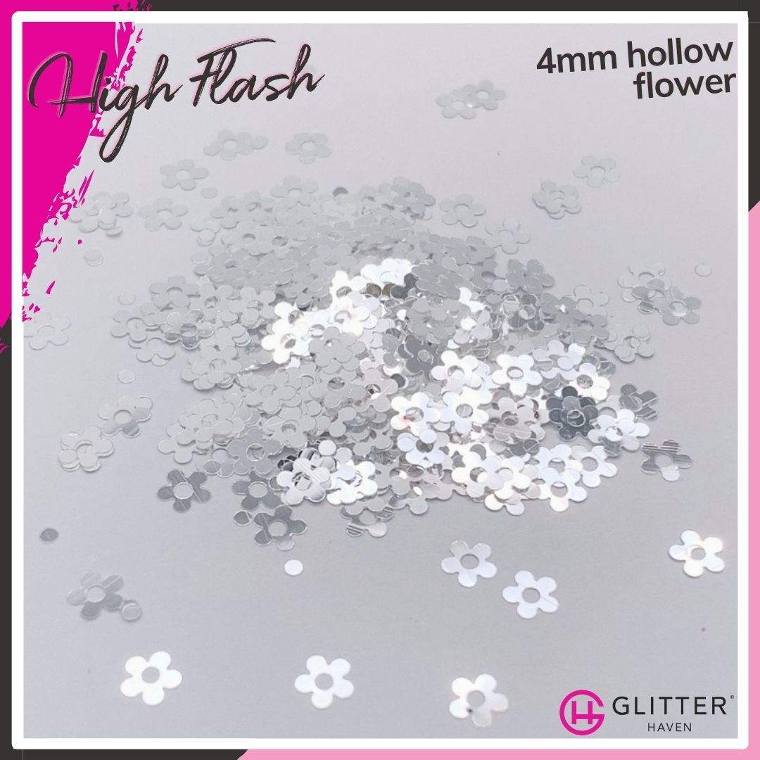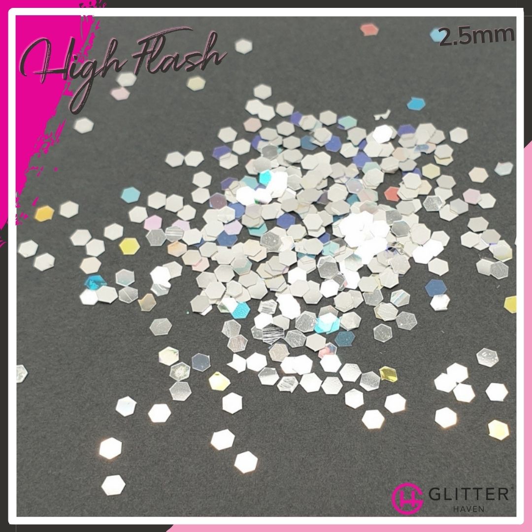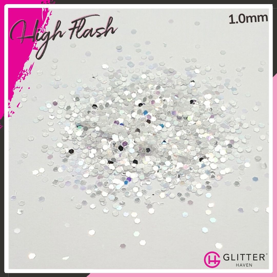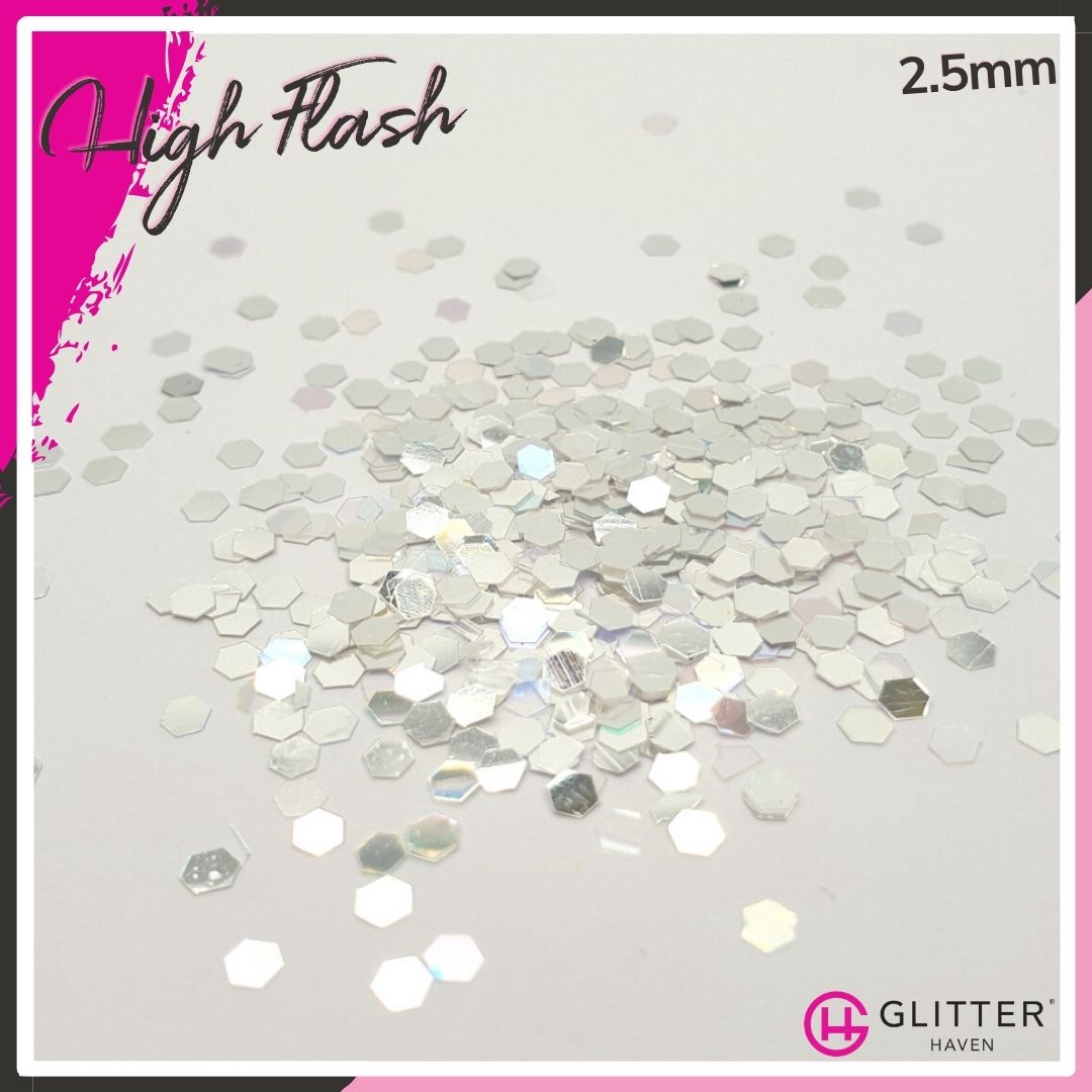 Silver like a polished mirror, and reflecting white like the light from a camera, High Flash is a dazzling glitter that will have the paparazzi going wild.