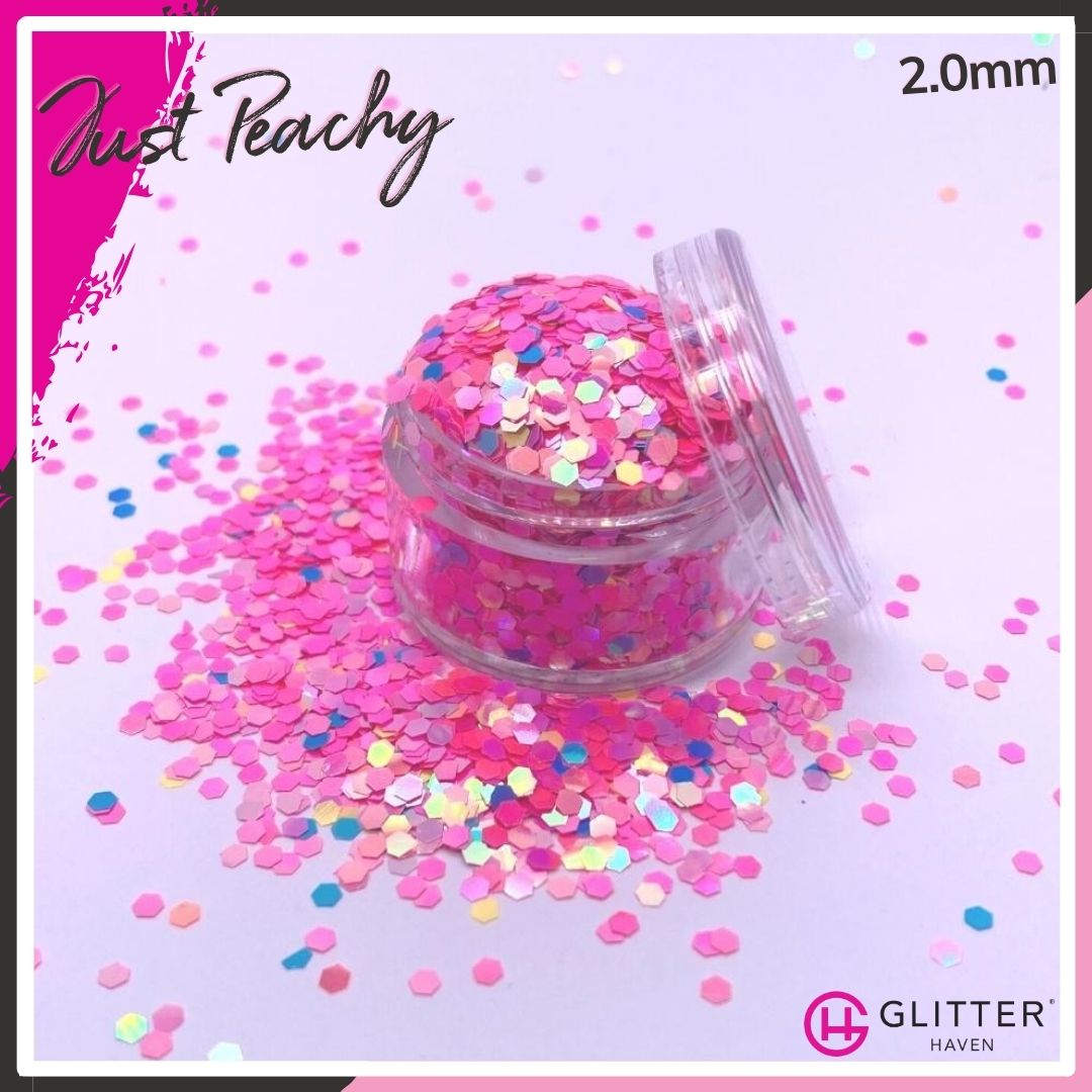 A chameleon glitter with a difference, Just Peachy is a custom blend of particles that colour-shift from hot pink to peach, and a sprinkling of shiny blue and yellow. Everything will be Just Peachy with this glitter at your disposal.