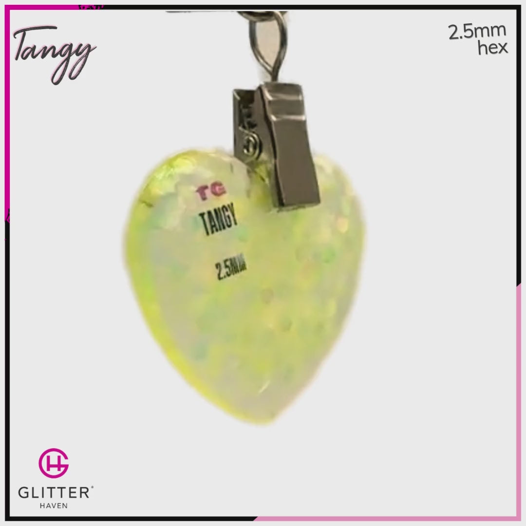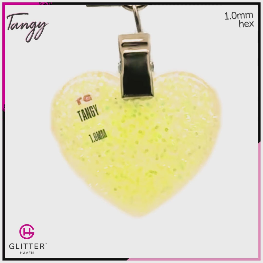 Tangy is a neon light-orange transparent glitter. It's a shimmering, happy colour that is sure to put a smile on your face with its intense burst of colour and fluorescing nature.