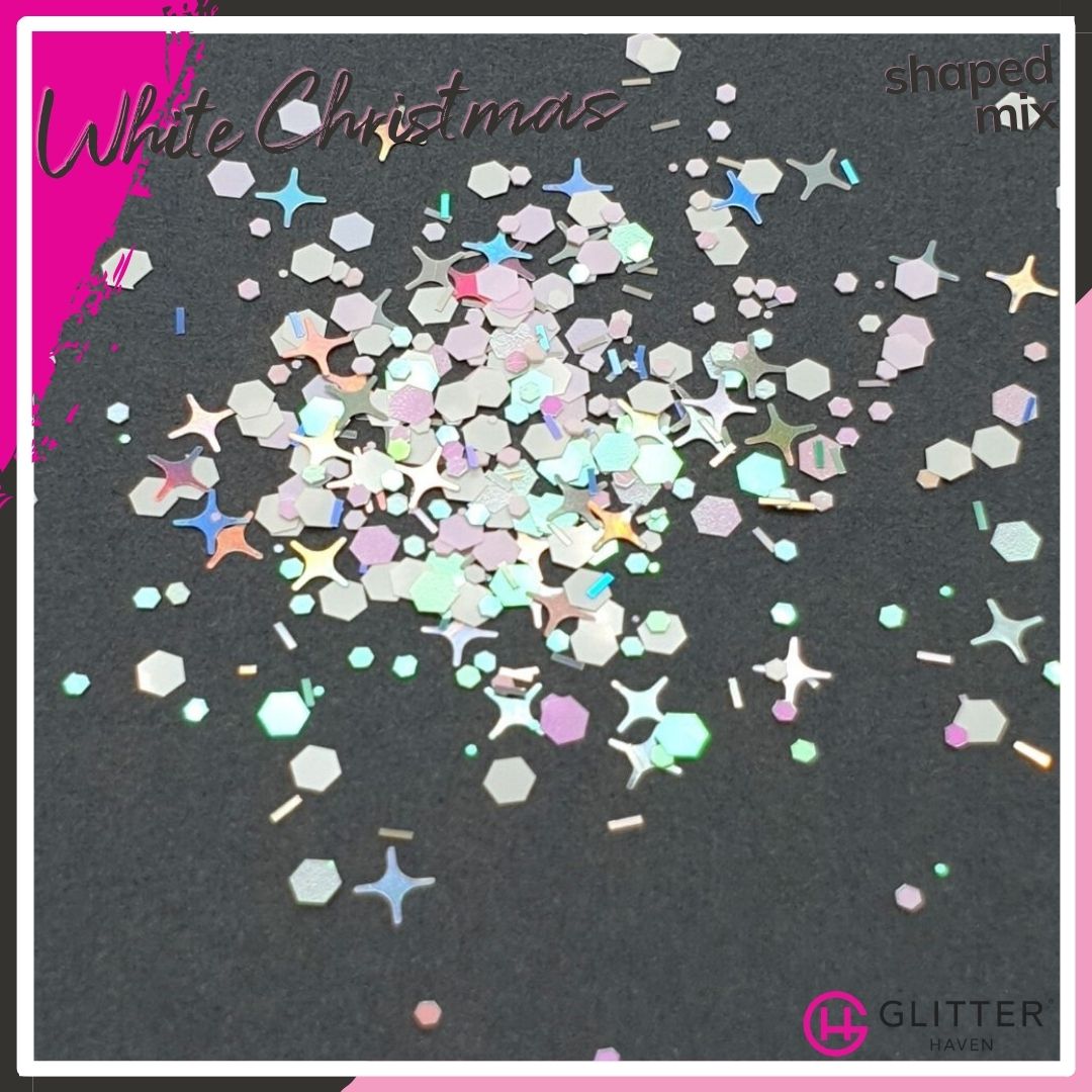 🎶 I'm dreaming of a White Christmas 🎵 ... and it looks like a gorgeous white to pink colour shift hexagon with silver holographic tinsel and 4 point stars.